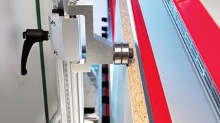 - Grande butée extrêmement rigide déplaçable avec lecture sur latte millimétrée de précision.