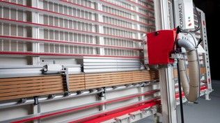 - Barre support intermédiaire pour petits panneaux, escamotable manuellement, longueur 4600 mm et doigts d’appui en aluminium.