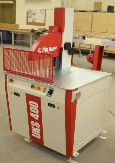 Dans la série UKS, Störi Mantel nous offre 3 machines: la UKS400, la UKS700 et la UKS1000. Il s'agit de tronçonneuses pneumatiques de construction stable pour largeur de tronçonnage de 400mm, 700mm et 850 mm. La tôle de la table a une épaisseur de 10 mm.